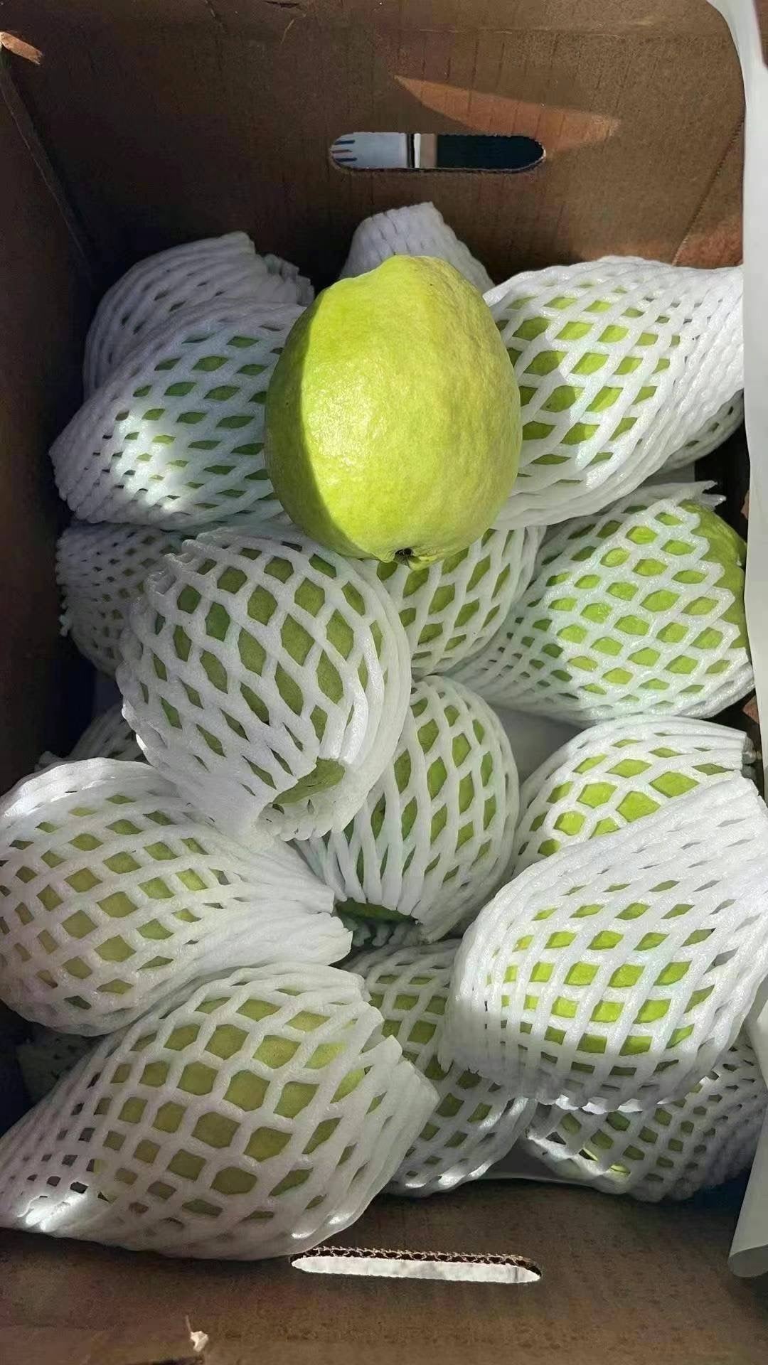 The taste is unique and delicious like a combination between a pear and a strawberry. The fragrance of the guava transports you straight to the tropics so when you get one, before eating it, take a good sniff and you'll see what we are talking about.